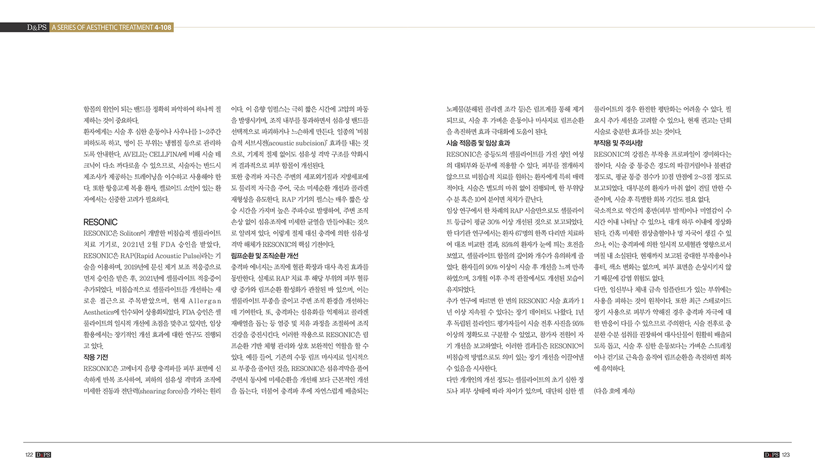있으며, CELLFINA와 AVELI는 섬유성 밴드를 정밀하게 절제해 함몰을 근본적으로 개선하고 수년간 효과 지속이 가능하다고 설명했다. 또한 음향 충격파 기술을 이용한 RESONIC은 비침습적으로 섬유격막을